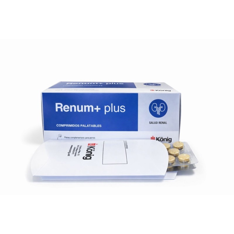 Renum + en formato comprimidos es un nutracéutico que ofrece una solución para los problemas renales en perros con efecto nefroprotector. Es una combinación de Coenzima Q10 (ubiquinona) con las cuatro formas de tocoferoles de la vitamina E: alfa-tocoferol, beta-tocoferol, gamma-tocoferol y delta-tocoferol (α, β,γ,δ-tocoferol).